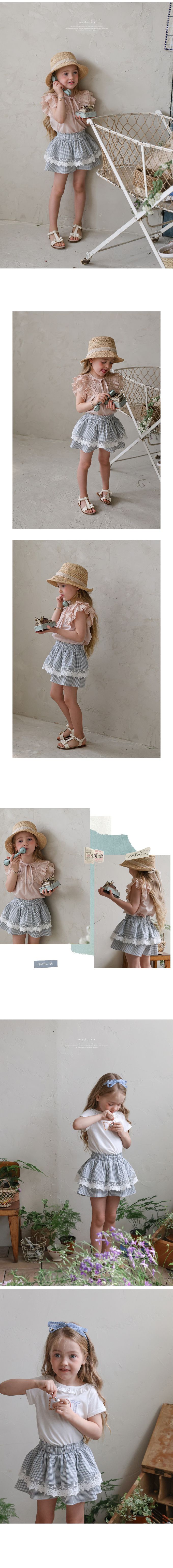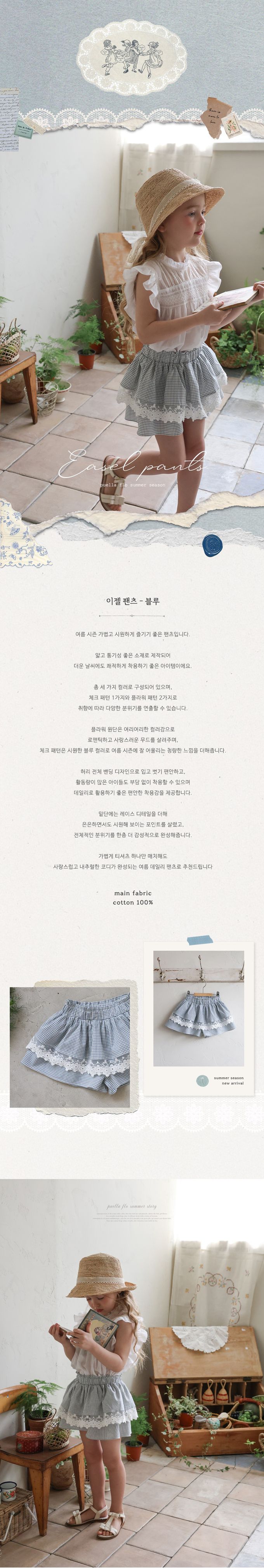 韓國南大門童裝 - Puellaflo 鬆緊腰簡約格紋層次裙褲-深藍