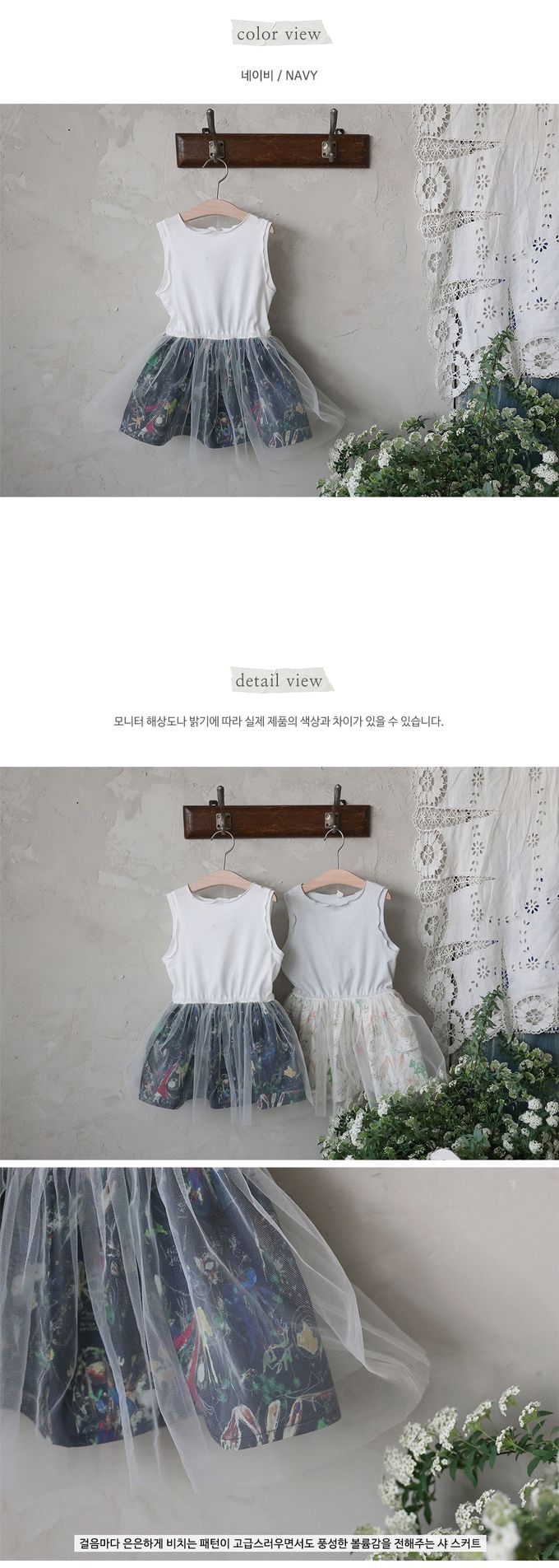韓國南大門童裝 - Puellaflo 寶貝塗鴉背心網紗裙洋裝-白X海軍藍