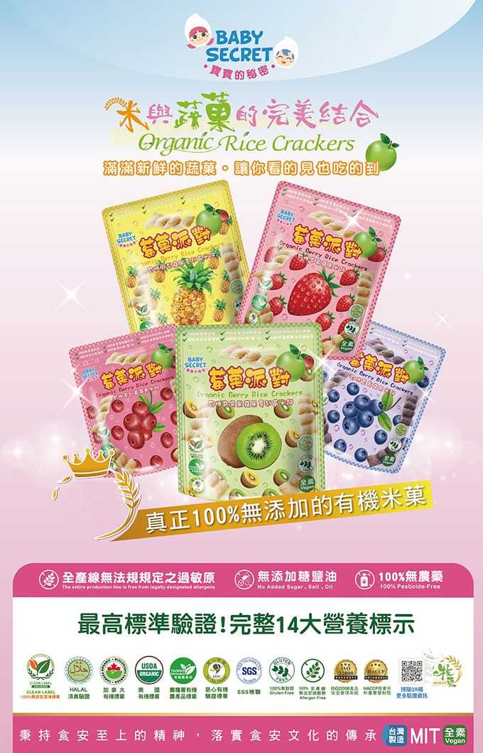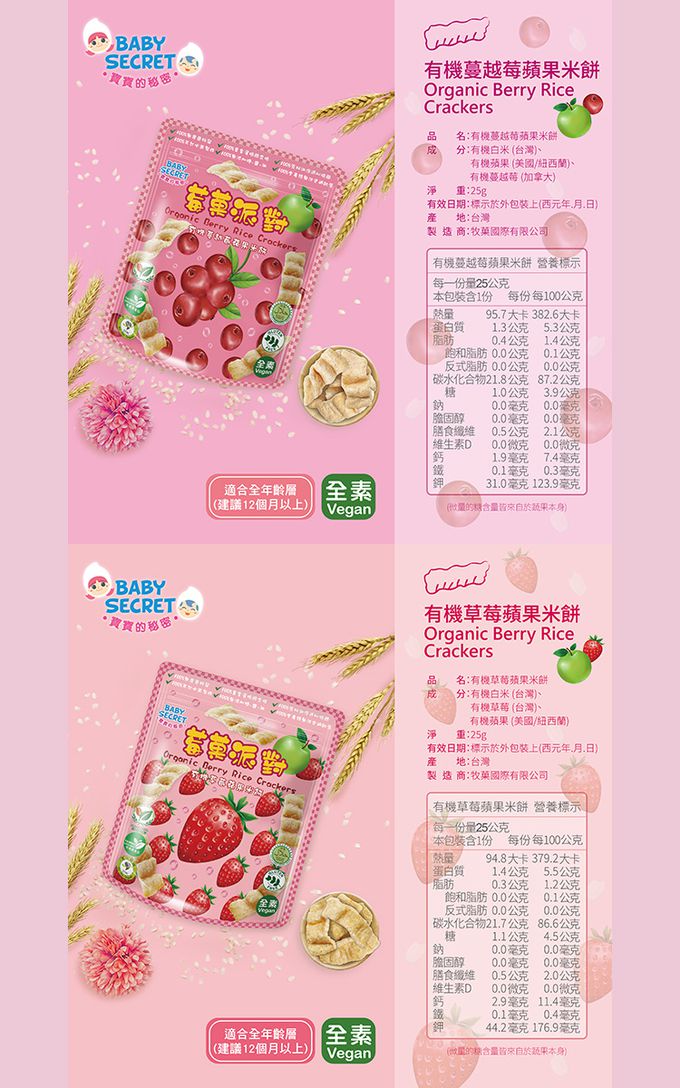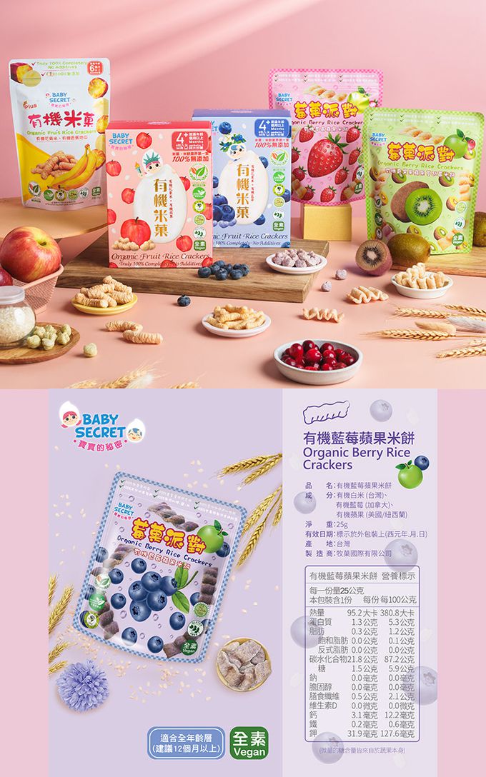 成分:有機白米(台灣)、有機蘋果(美國/紐西蘭)、有機蔓越莓(加拿大)、有機藍莓(加拿大)、有機草莓(台灣)、有機鳳梨(台灣)、有機奇異果(紐西蘭)