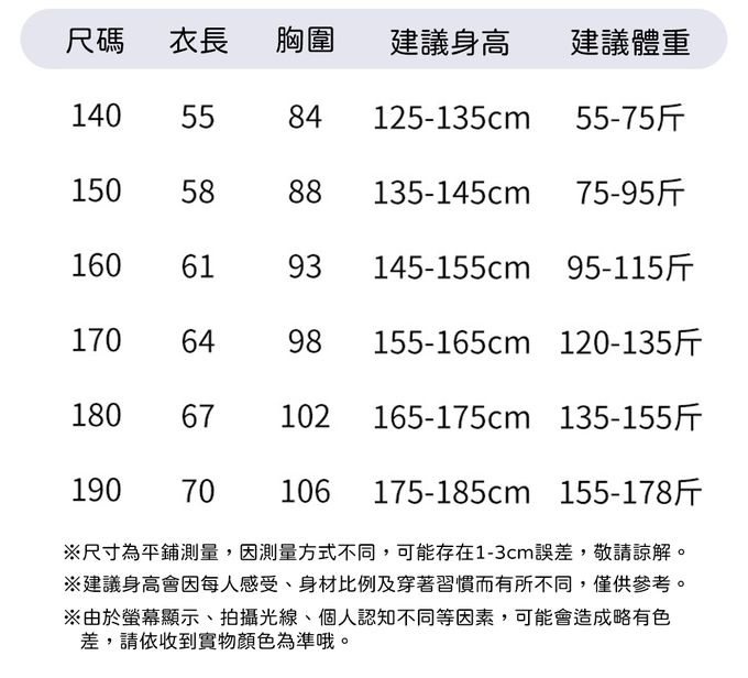 140cm、150cm、160cm、170cm、180cm、190cm