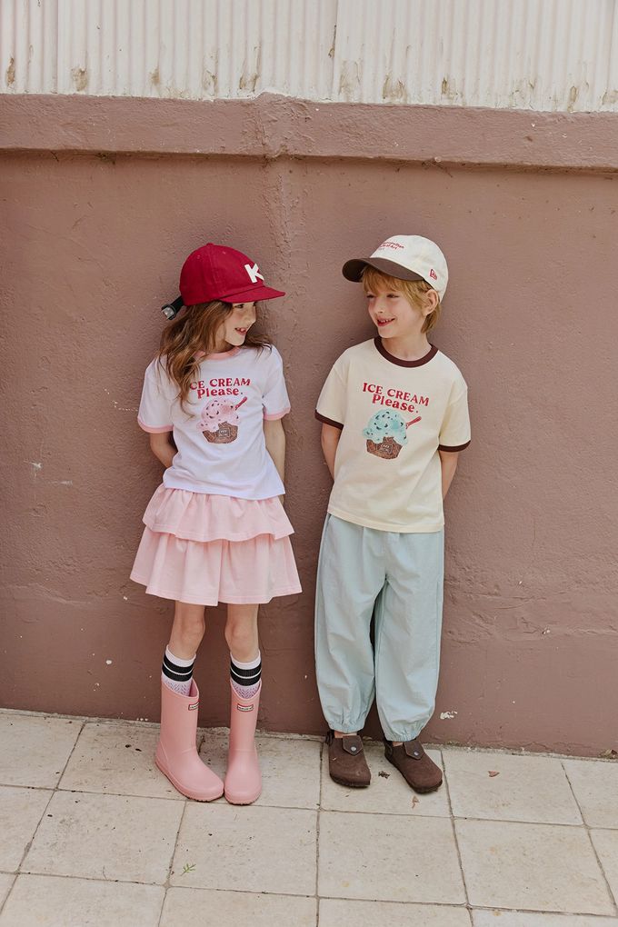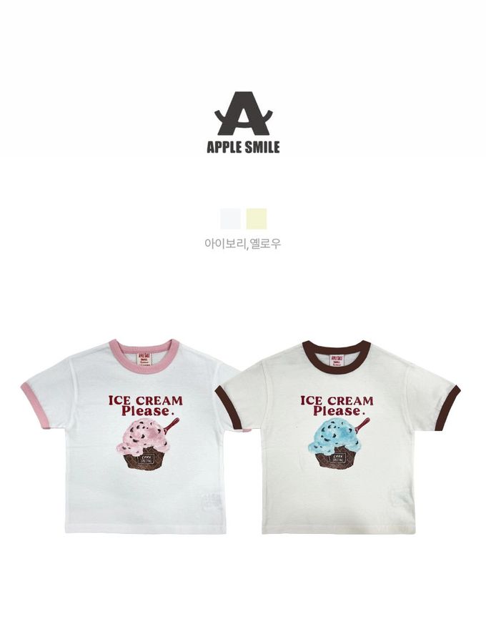 韓國南大門童裝 - APPLE SMILE 冰淇淋圖案純棉短袖上衣-薄荷巧克力-淺黃