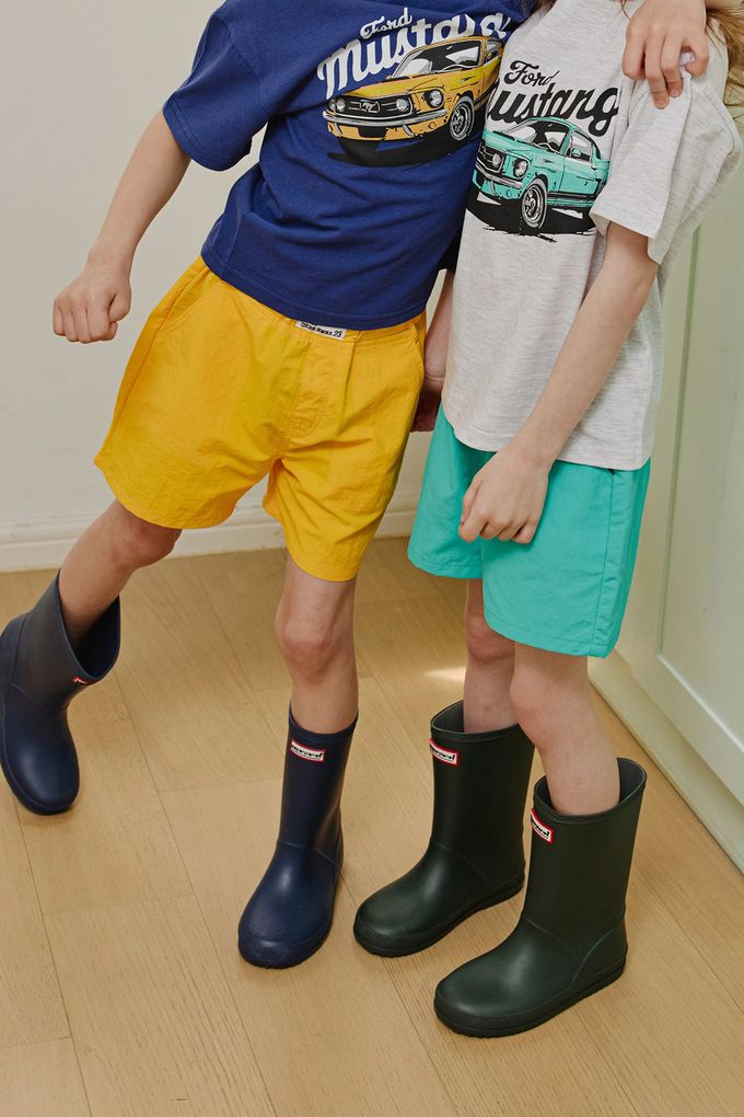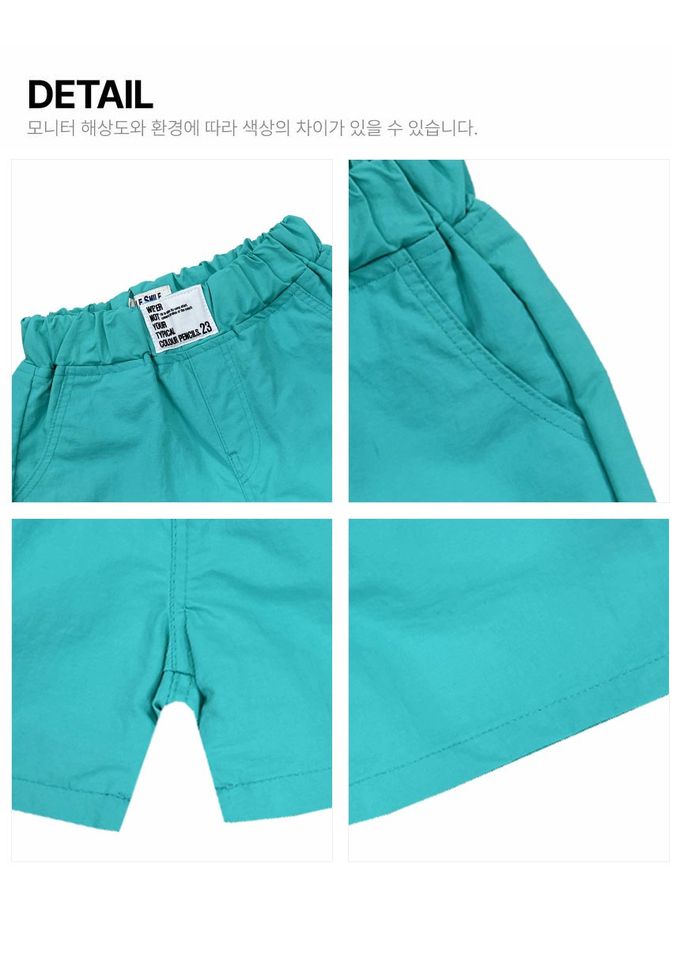 韓國南大門童裝 - APPLE SMILE 鬆緊腰夏日氛圍尼龍短褲-湖水綠