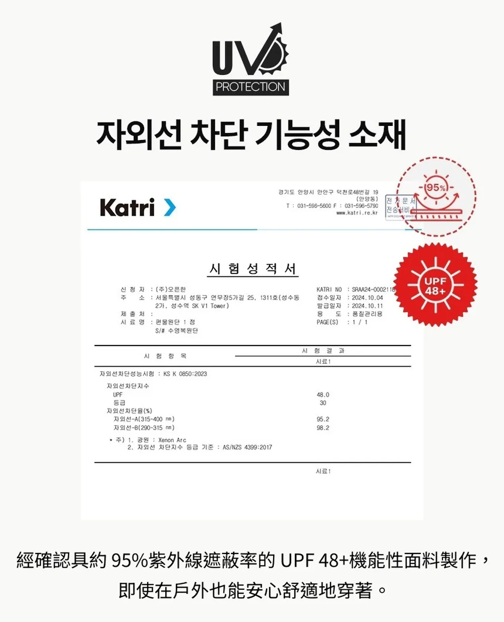 • UPF48+防曬等級認證,紫外線遮蔽率達約95%