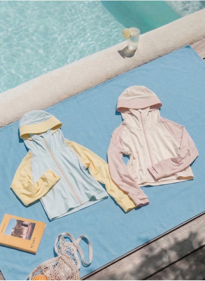 韓國 OZKIZ - 抗UV遮陽防曬玩水連帽外套-天藍X淺黃