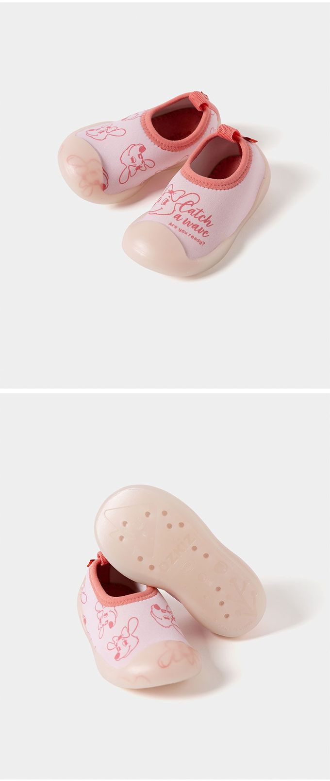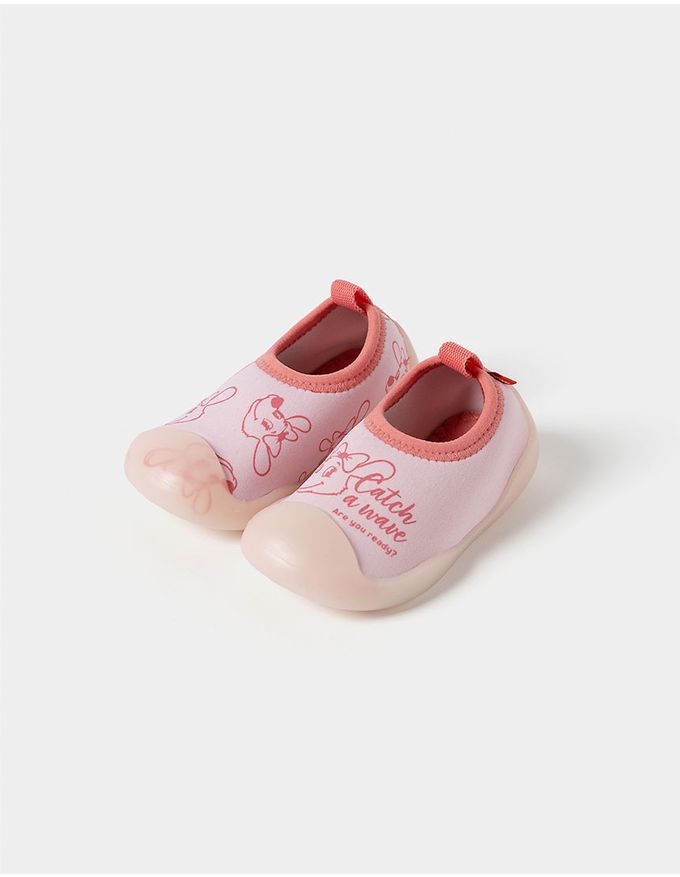 韓國 OZKIZ - 腳尖加強防護透氣快乾兒童沙灘鞋/戲水鞋-笑臉狗狗-粉