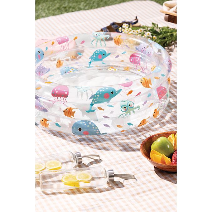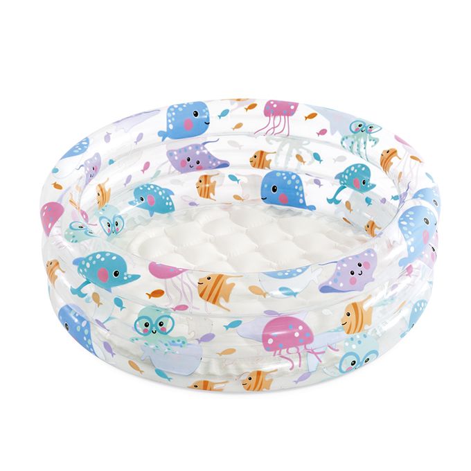 注意事項:●過度充氣可能導致產品破損,外側及內側保有些許皺褶的狀態較為適當。●置於烈日下時,本體可能會變軟,請避免再次充氣,僅少量補充即可。●充氣栓是栓跟閥所組成的雙層構造,閥只是為了防止急速漏氣用的輔助閥,並不能完全阻止漏氣。因此,請務必將栓壓緊後再使用。●充氣後,請將栓壓緊,並用力壓向本體內部後再使用。若感到難以壓進去時,可先沾濕後在往內壓。●請先確認放置游泳池的附近是否有會造成泳池破損的尖銳物,或玻璃碎片、金屬片等。●使用時,建議於泳池下方鋪設墊子等,可減少刮傷並延長使用壽命。●游泳池內的水請每天更換,以保持衛生。●請勿在水上使用本產品。●請妥善保存本說明書,以便日後需要時可參考。●僅限家庭使用。●本產品僅限於自家戶外使用。●請勿於水泥地、柏油路等堅硬的地面上使用。●請由充氣閥充氣後再使用。●警告:不適合未滿1歲或超過3歲的兒童使用。●若玩具裝在塑膠袋內或以塑膠膜包裝,開封後請立即將塑膠袋、塑膠膜丟棄,或放置於嬰幼兒無法取得的地方,以免發生窒息的危險。●請勿作為其他用途使用。●請勿讓幼童獨自玩耍,以免發生危險。請在家長或大人的陪同下使用。●風勢較大時請勿使用,以免被風或浪沖走而發生危險。●即使是少量的水也可能造成幼童溺水的危險。未使用時,請務必將水排空。