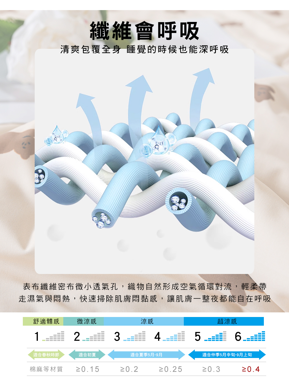 ◎材質:表布-涼感紗(87%尼龍+13%彈性纖維)/填充物-30%萊賽爾+70%聚酯纖維