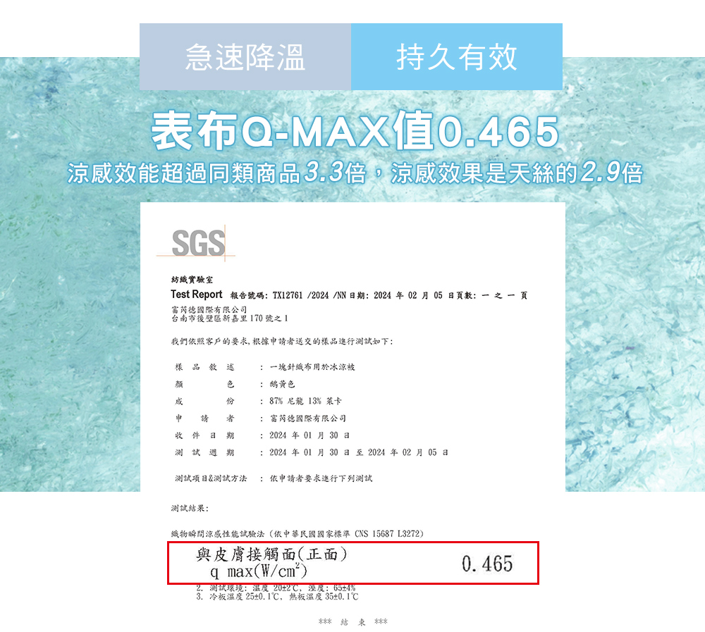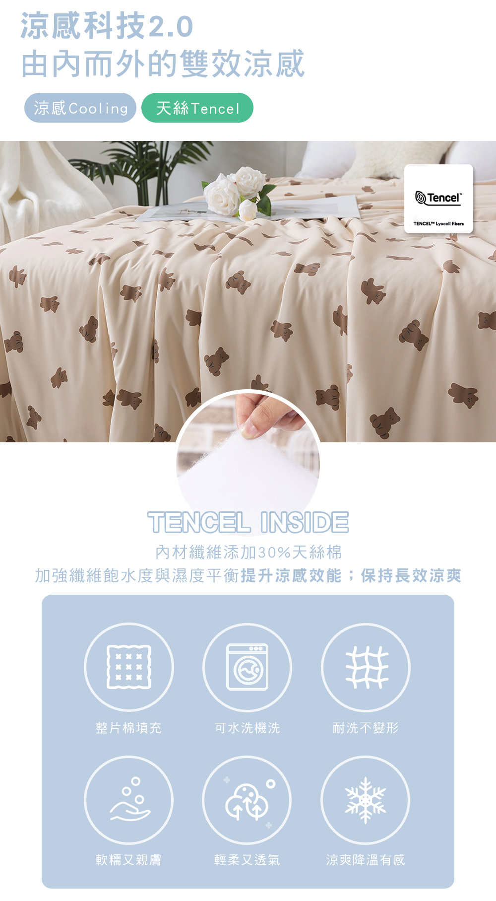 • 材質:表布-涼感紗(87%尼龍+13%彈性纖維)/填充物-30%萊賽爾+70%聚酯纖維