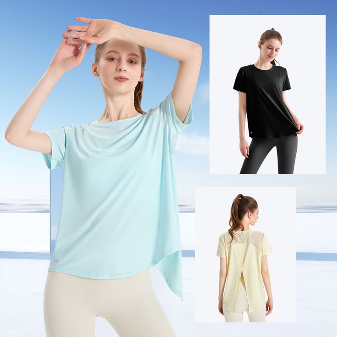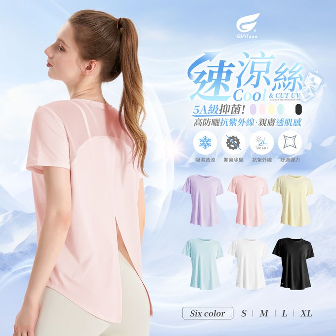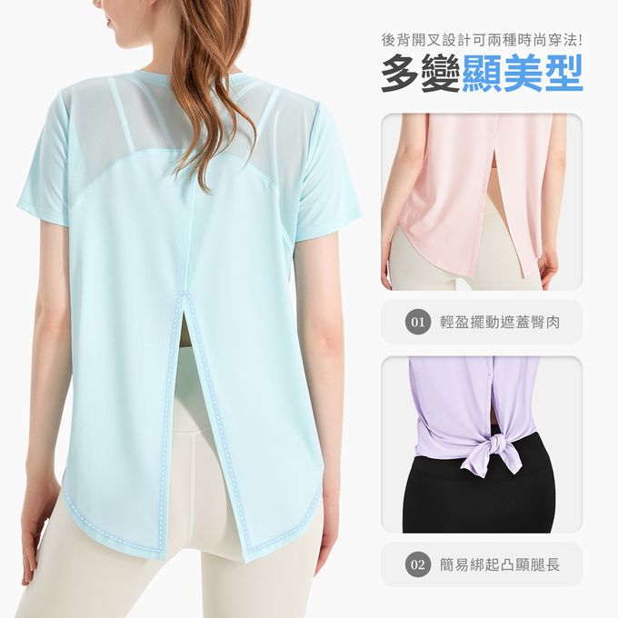 涼絲感燕尾開岔短袖罩衫-冰霧粉