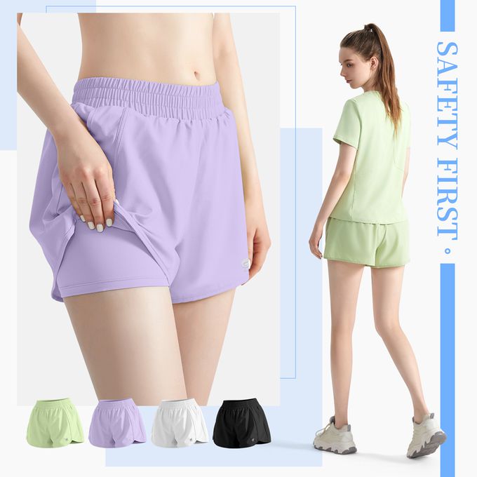 7A抑菌假兩件輕量口袋短褲-羅蘭紫
