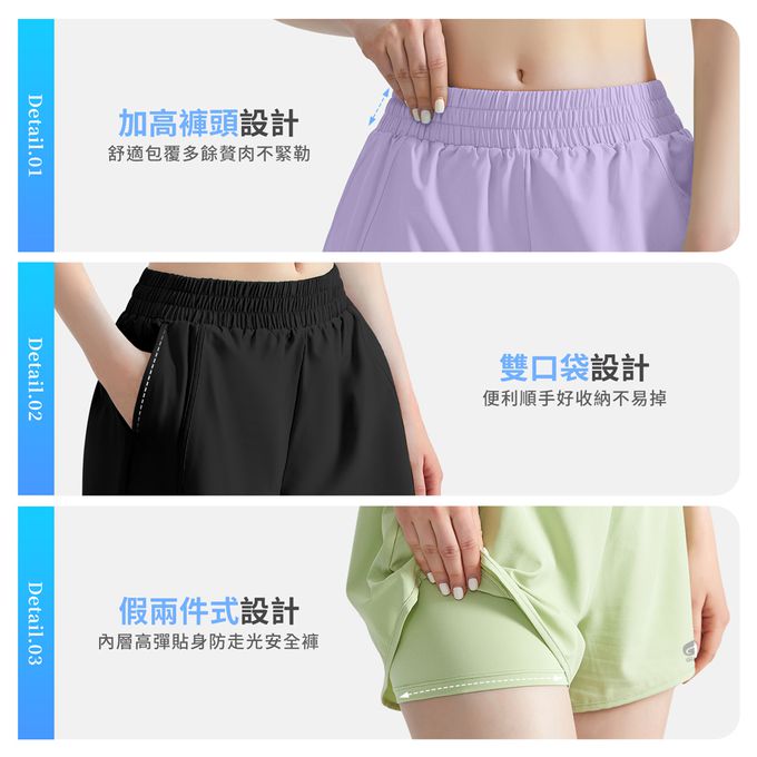 品名:7A抑菌假兩件輕量口袋短褲