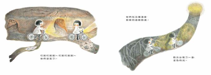 琪莉和琪莉莉趕快騎著腳踏車一探究竟。