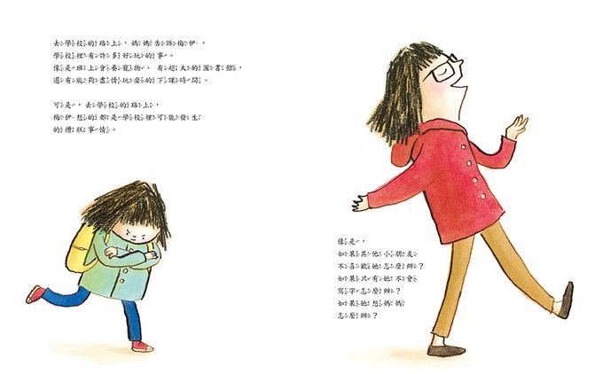 「許多孩子在面對新情境時都會感到不知所措,例如第一次上學。凱特.貝魯比完美捕捉了孩子們內心的感受。她運用墨水、特殊顏料、壓克力顏料和色鉛筆為這本繪本創作了插圖。她的圖像超越了文字,向讀者展現了文字中沒有呈現的內容。《我不敢上學》非常適合在新學期開始的時候閱讀,或者在班級即將迎來新同學的時候閱讀。」by Jane