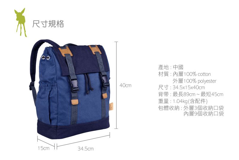背包左右的縮口袋,可收奶瓶和保溫杯,背面有拉鍊口袋,方便拿取零錢包、悠遊卡,背部有軟墊設計,久背也很舒適