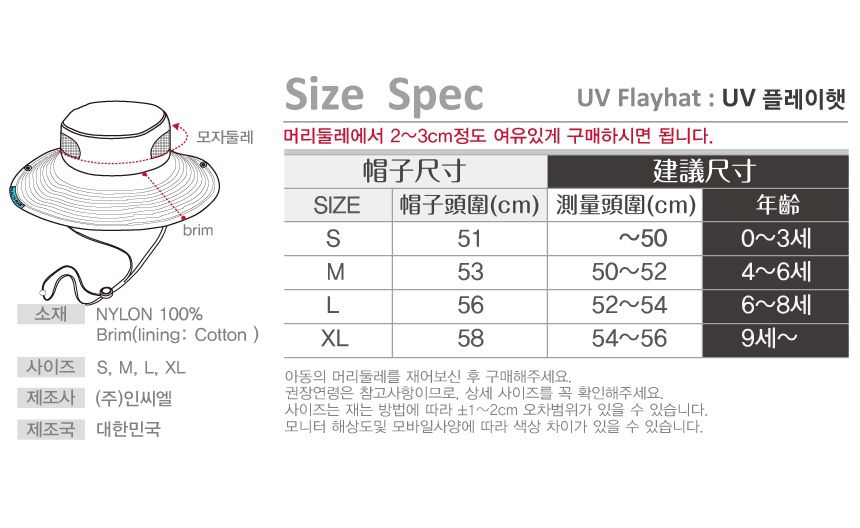 尺寸:S[頭圍 47-51cm] M[頭圍 52-54cm] L[頭圍 55-57cm]材質:尼龍100%產地:韓國