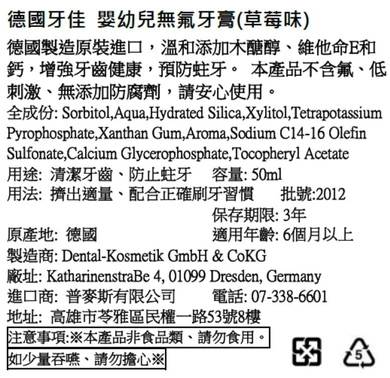 孩子喜歡草莓味,不含氟可吞食又是德國製,非常安心