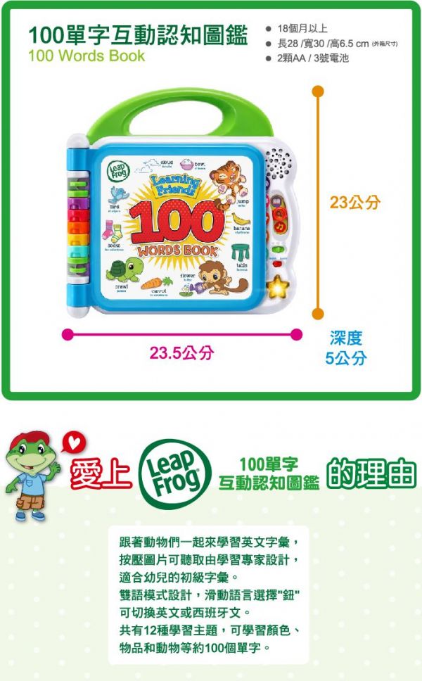 中間的圖案都可以按喔!按下會念出單字,裡面的 100 個單字是 LeapFrog 特別找學習專家設計,適合幼兒的初級字彙。