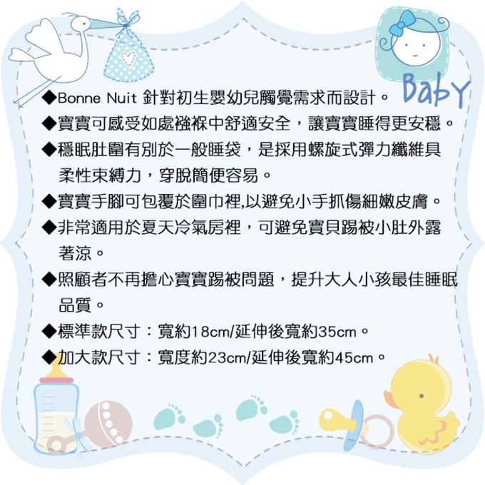✔ 寶寶踢被不著涼,亦可把小手放進肚圍,就不怕抓傷囉