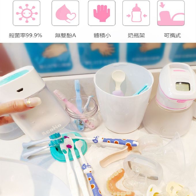 方便攜帶的消毒器,讓媽媽可以快速消毒寶寶的奶嘴或小物品,不用再一直拿去沖熱水啦啦啦啦!!!