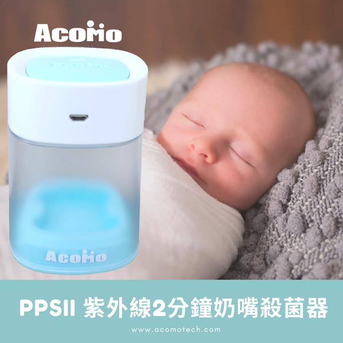 AcoMo PPS II個人殺菌器絕對是超強第二代!除了讓寶貝們的奶嘴、固齒器跟細菌說掰掰,連媽咪的私密小物也照樣可以消毒!延續PPS II 的使用時間,寶寶長大後,還是可以當成居家消毒用品呢!這麼好的幫手怎麼能錯過?
