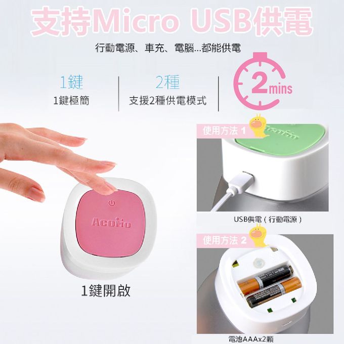 特別的是,除了電池供電外,還增加了支援USB接孔,讓媽咪外出只要有行動電源就可以使用!不怕還要隨時準備好電池