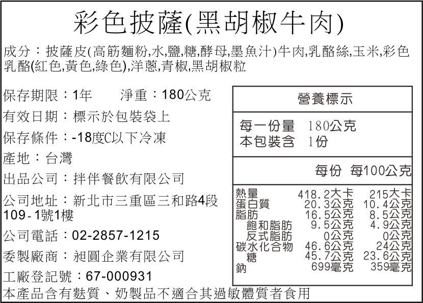 6.5吋彩色披薩-黑胡椒牛肉-黑-180g/1份