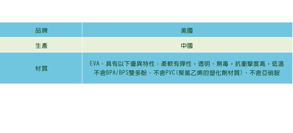 🌺 環保無毒 EVA安全塑膠,具有以下優異特性:柔軟有彈性,透明、無毒,抗衝擊度高,適合低溫。