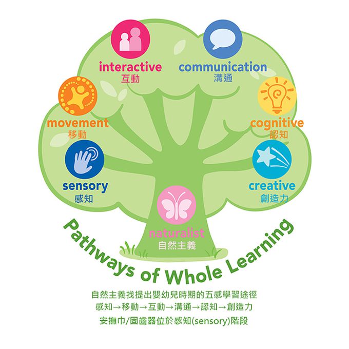 🌺 一個固齒器上有多種紋理設計,讓寶寶牙齦/牙齒有不同程度按摩舒緩,同時增加寶寶感官認知學習。