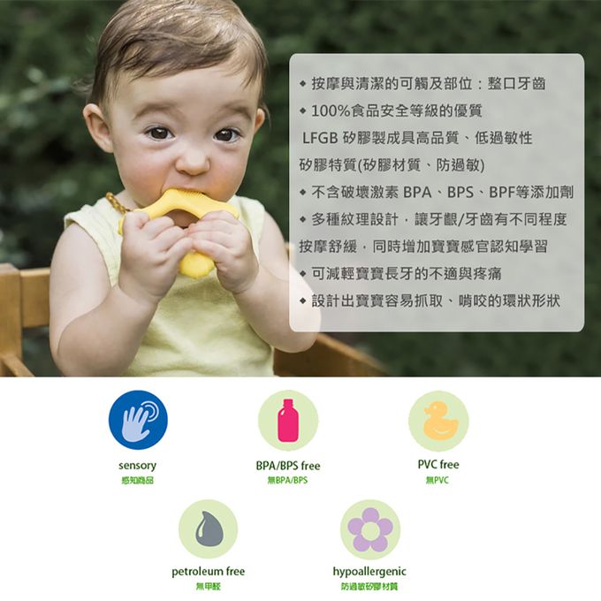 🌺 設計出寶寶容易抓取、容易啃咬的環狀形狀。