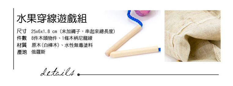 很有趣的玩具 藉由手指穿線來增強指頭靈活度 也能讓寶寶認識水果樣貌 當然食用顏料這塊 也是讓我非常放心給小孩玩的條件之一 另一個原因即使方便攜帶👍