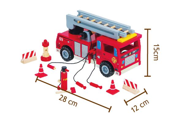 • 雲梯可伸縮救火、車車頭蓋可掀開、消防水帶可搭配消防栓使用