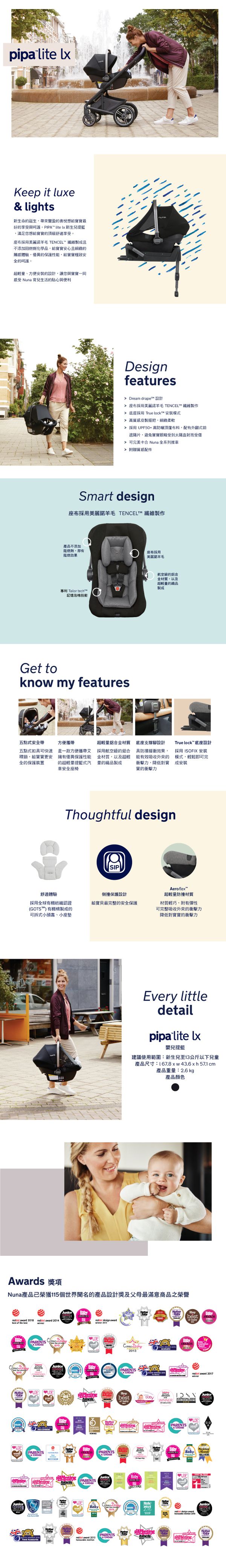 產地:中國適用年齡:0-18個月體重制限:13 kg保固:原廠1年保固重量:2.6 kg (不包含底座及其他配件)尺寸:H 67.2 x W 44 x L 68.3 cm