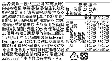• 品名:艾唯倪優格豆豆餅(草莓風味)20g/包_7M以上
