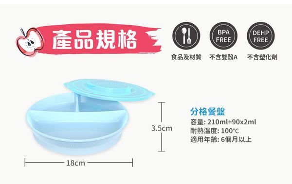 轉轉扣組合式防滑分格餐盤-晴空藍-6個月以上適用 可直接冷藏微波方便