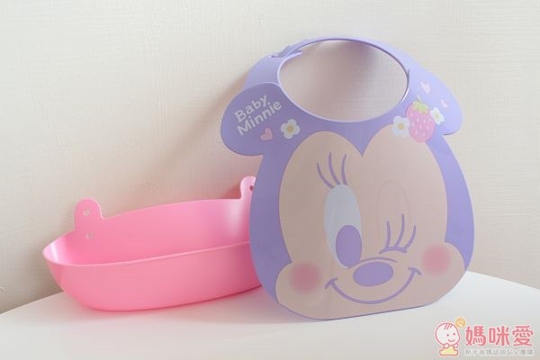 上面有米妮寶寶的英文,設計是粉嫩風格。