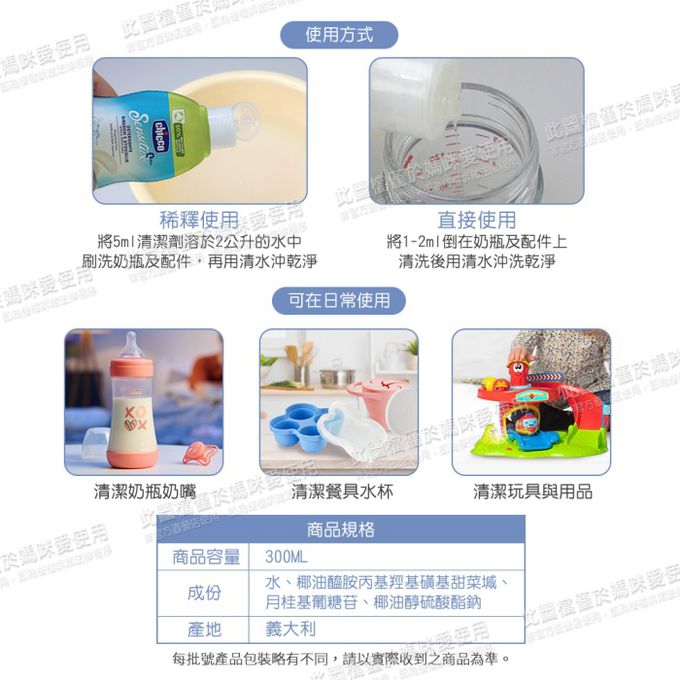 義大利 chicco - 奶瓶食器清潔劑-箱購-300ml x6入