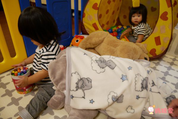 小噹拿毛毯去幫她的大象蓋被被(*´∀`)~♥