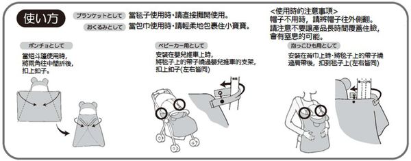 多功能毯絕對是媽咪要入手的好物!媽咪最重視的就是東西的實用性了,這款毯子可以當成推車、背巾的保暖遮罩、嬰兒包巾和短斗篷,出門也可以暖呼呼~(使用方式請見下文)