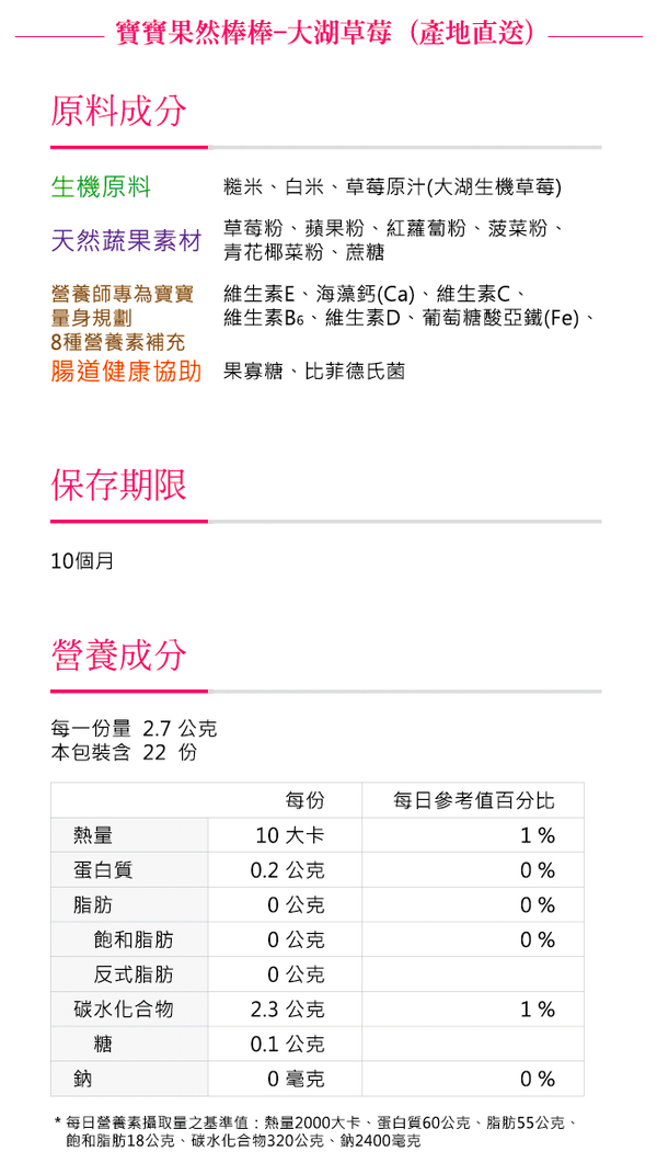 使用天然無添加的成分,嚴選無毒生機農場的白米、糙米和蔬果,還能補充8大營養(比菲德氏菌、果寡糖、鈣、鐵、維生素B6、C、D3、E)!