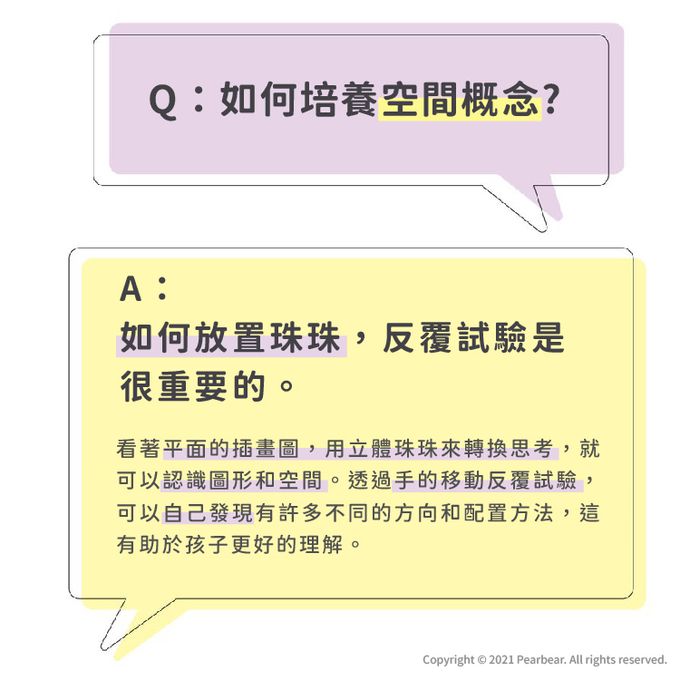 使用12種不同的串連珠珠,組成各式題目拼圖