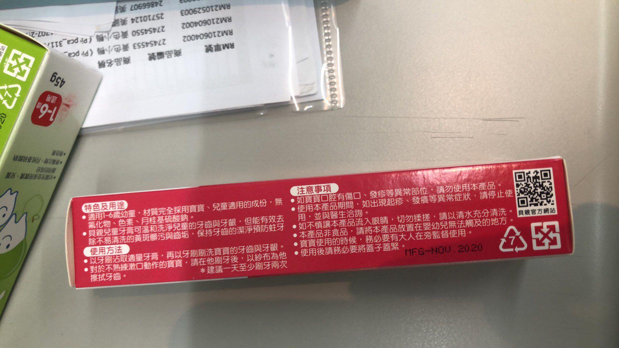 • 品名:兒童牙膏