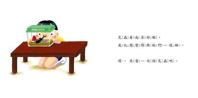 • 簡單又富有想像力的奇幻故事,讓孩子體驗當一天昆蟲的生活。