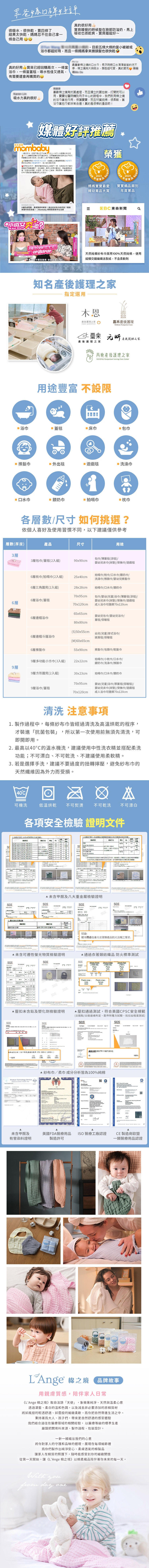 L’Ange同時也是木恩產後護理之家愛用的品牌呢!看看剛出生的寶寶蓋著純棉紗布毯的樣子,好療癒啊~