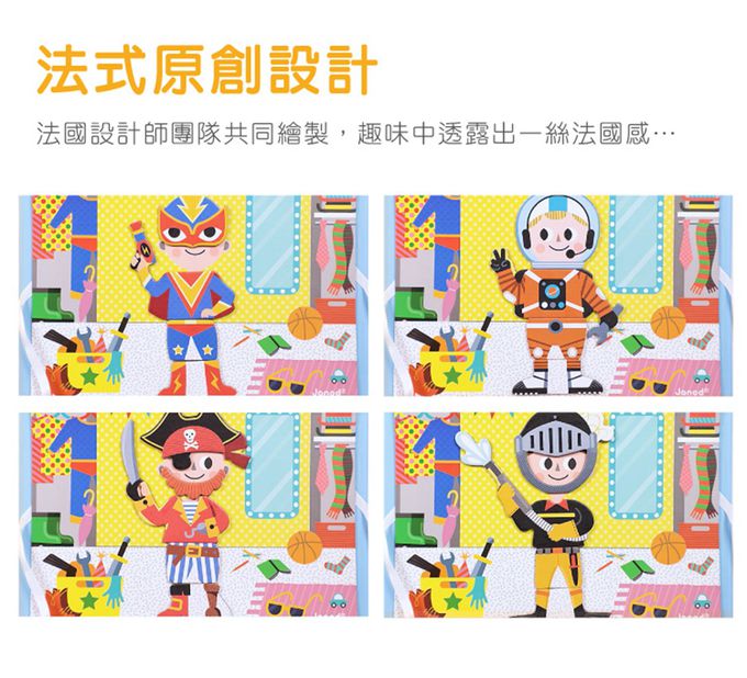圖卡有超人、消防員、音樂家、太空人、勇敢騎士、小丑...等等多種角色。