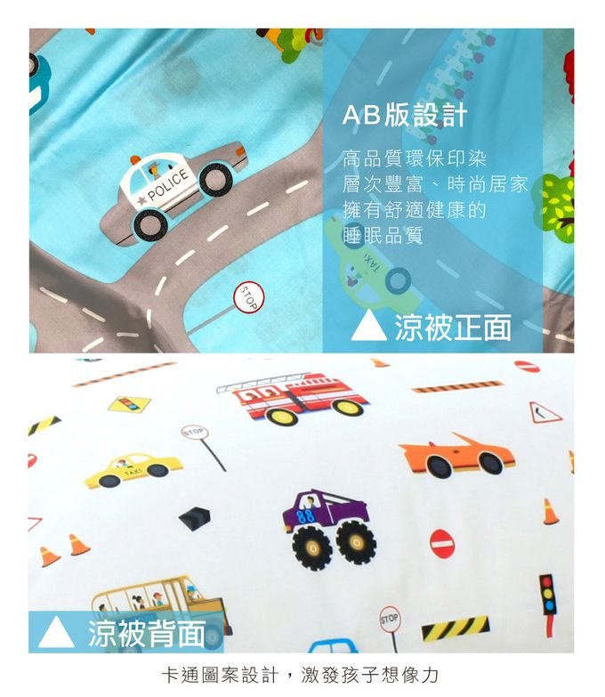 鴻宇 HongYew - 台灣製防螨抗菌100%美國棉兒童涼被 四季被-交通樂園-1778