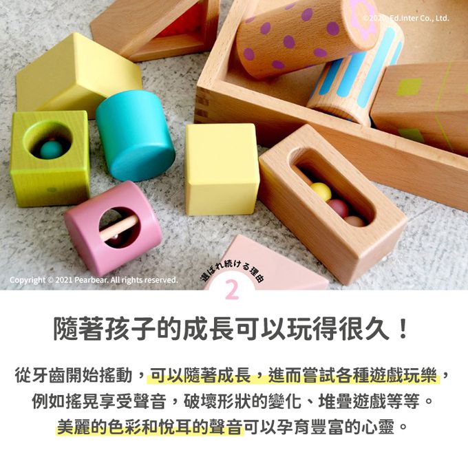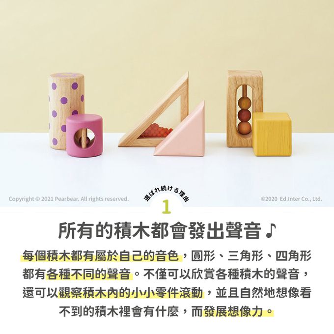 把積木變成像手搖鈴一樣有趣啦!有別於一般積木,能透過有趣的觀察、搖晃,發出充滿叮叮咚咚各種聲音。
