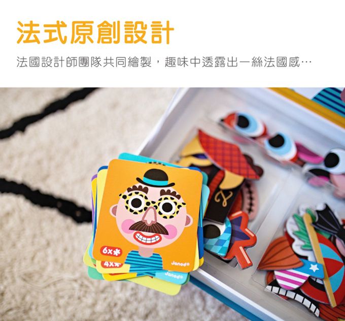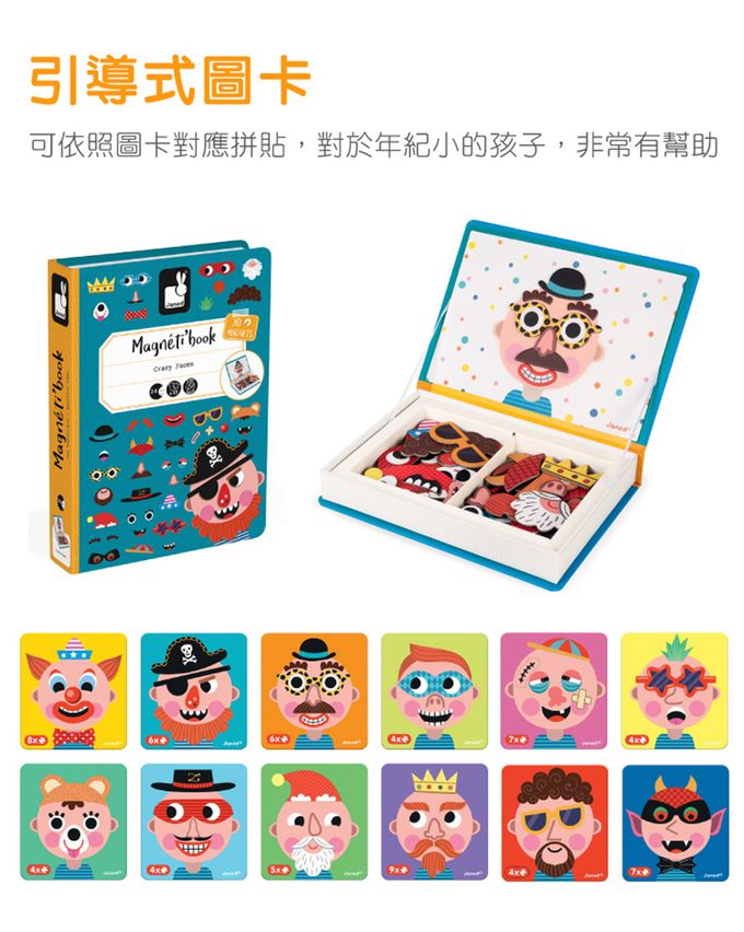 每片提示圖卡採雙面設計,邊邊有標註 “使用的磁鐵片數”,可隨意搭配,激發孩子創造力。(表情變化多又逗趣)