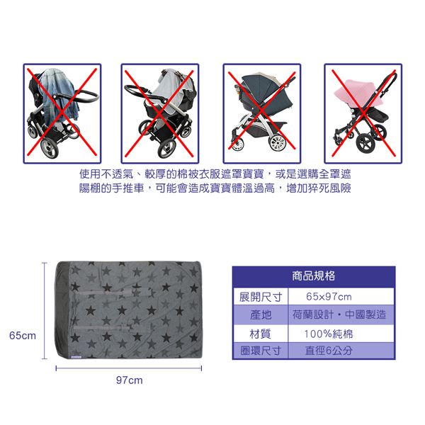 荷蘭 DOOKY - 抗UV手提汽座可調式遮陽罩-鉛灰星星