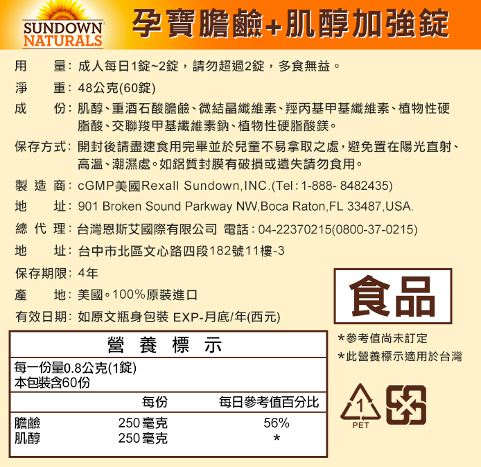 美國Sundown日落恩賜 - 孕寶膽鹼+肌醇加強錠-60錠-4年