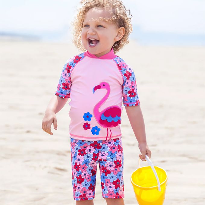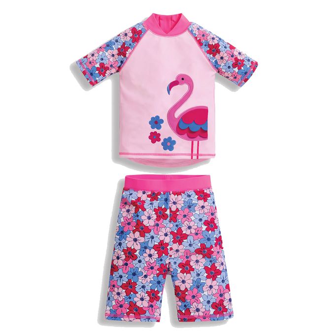 英國 JoJo Maman BeBe - 嬰幼兒/兒童兩件式防曬泳裝-紅鶴